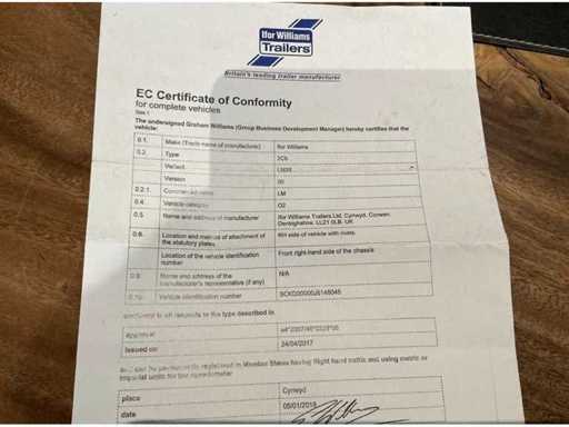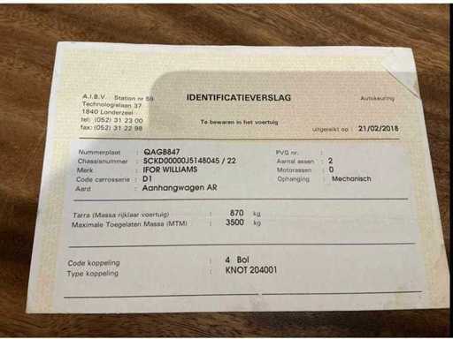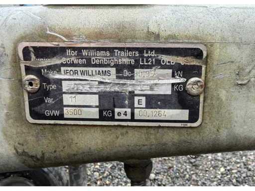 Ifor Williams LM35 Doppelachs-Plattformanhänger, geeignet für den Transport von Baumaterialien, Maschinen und verschiedenen Lasten. Es handelt sich um einen Mittelachsanhänger (Kategorie O2) mit einer maximal zulässigen Masse (GVW) von 3.500 kg und einem Tare von etwa 870 kg. Der Anhänger ist mit einer mechanischen Federung, Überlaufbremssystem und einer KNOTT-Kupplung (Typ 204001, 4-Kugel) ausgestattet. Die Fahrgestellnummer lautet SCKD00000J5148045 (erste Registrierung 20.02.2018). Der Anhänger ist mit einem Stahlfahrgestell und Aluminium-Klappseiten ausgestattet. Der Ladeboden zeigt normale Nutzungsanzeichen entsprechend der professionellen Nutzung. Der Anhänger ist mit Heckbeleuchtung, Reflektoren und einem Jockey-Rad ausgestattet. Abmessungen der Ladebox: Für einen Ifor Williams LM35 beträgt die Standardladefläche: Länge: ca. 3,60 Meter. Breite: ungefähr 1,95 Meter.