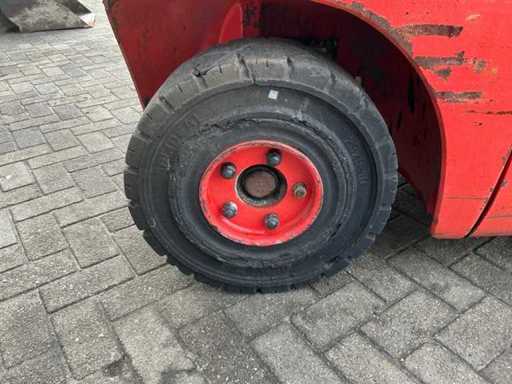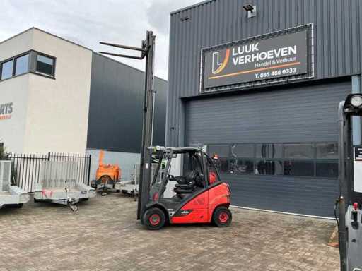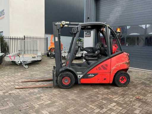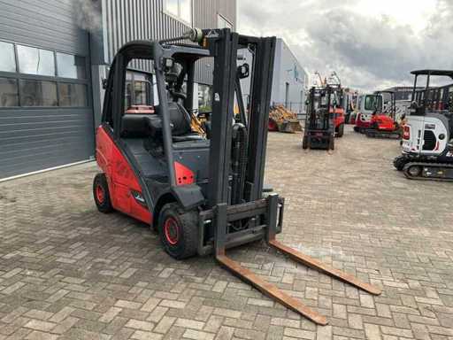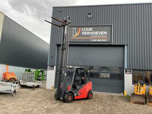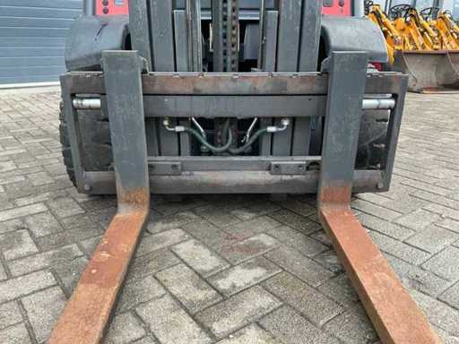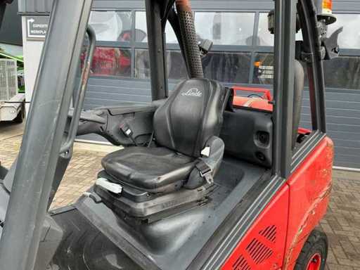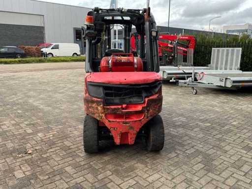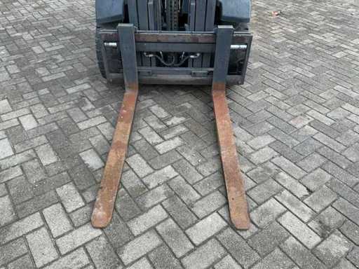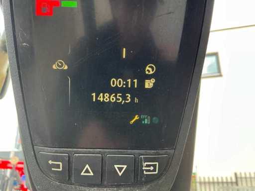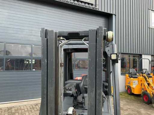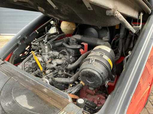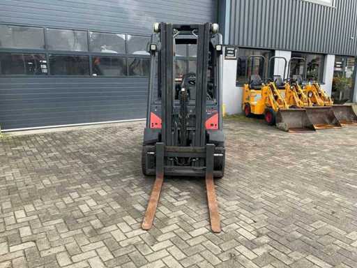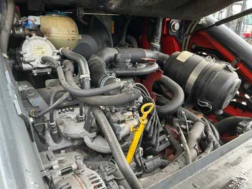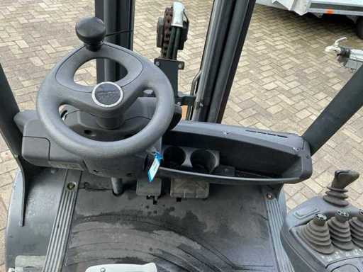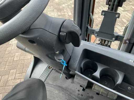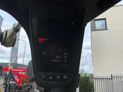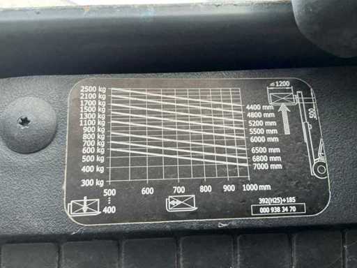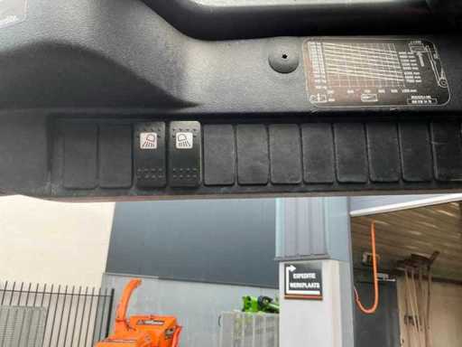 Ausgestattet mit: Löffel 1200 mm, Löffelbrett mit Schweißzug 1180 mm, Triplex-Mast, Freiheben, Seitenschieber, LED-Arbeitslampe, Zugauge mit Stift 25 mm, maximale Hebehöhe 4400 mm, maximale Hubkapazität 2500 kg.