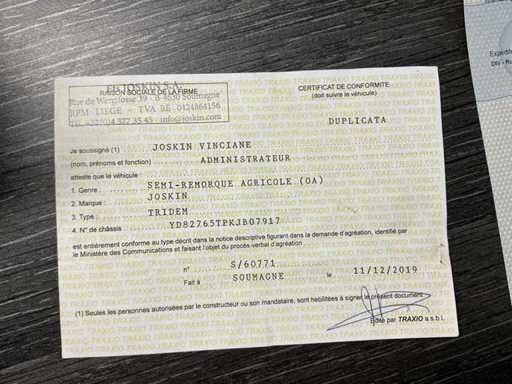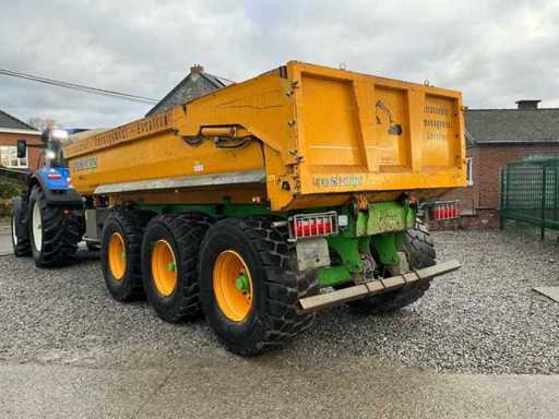 Robuster Joskin Trans-KTP 27/65 Tridem-Kipper mit Stahlschaufel, geeignet für schweren Transport in Boden-, Landwirtschafts- und Vertragsanwendungen.