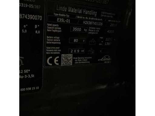 2019 Linde E35L-01 3500KG Gabelverstell-Gabelstapler