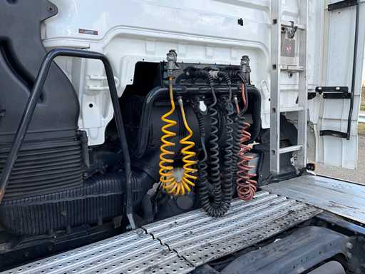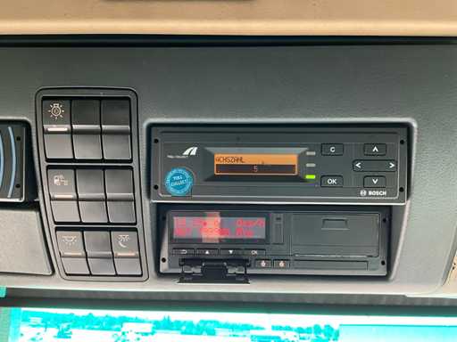 Elektrische Fenster und Spiegel, Spiegelheizung, Lenkradsteuerung, Klimaanlage, Schloss, digitaler Tachograph, Kühlschrank, Schlafkabine, doppelter Kraftstofftank, Anlasser