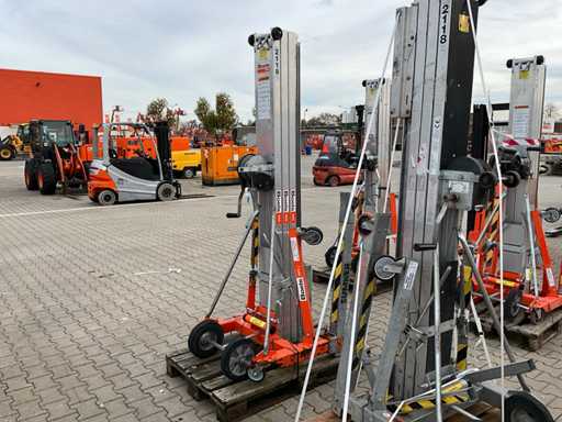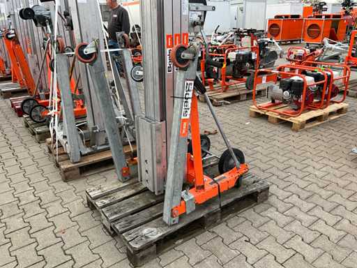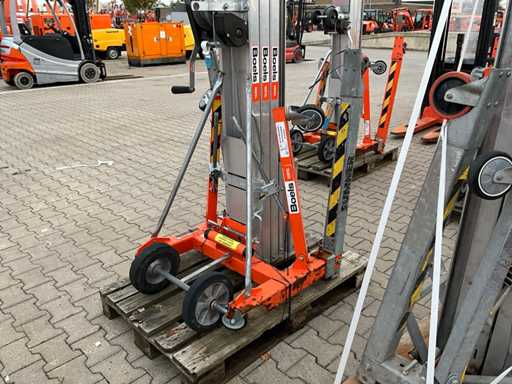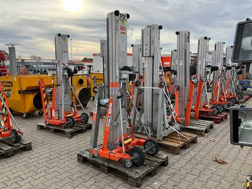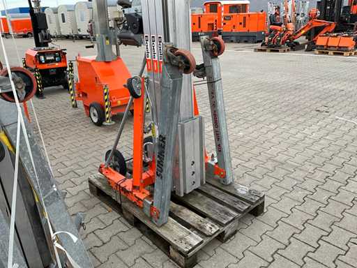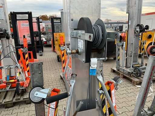 mobil; verzinkter Stahl/Aluminium; klappbarer Sockel; Seilwinde aus Drahtseil; Anwendung: Wartungsarbeiten / Montagearbeiten / Installationsarbeiten; unvollständig;