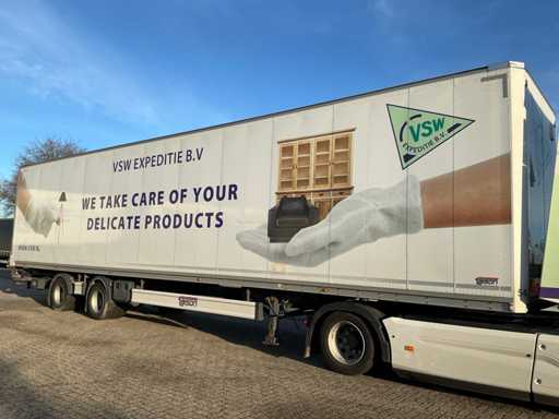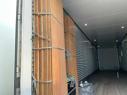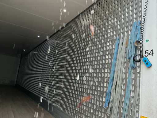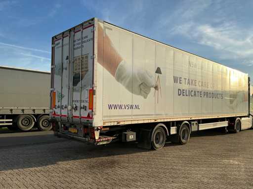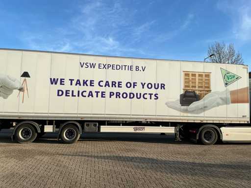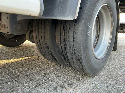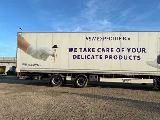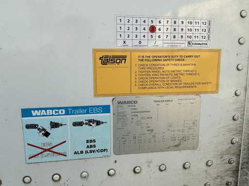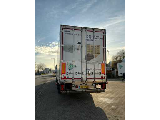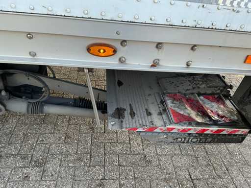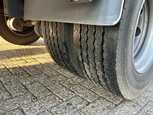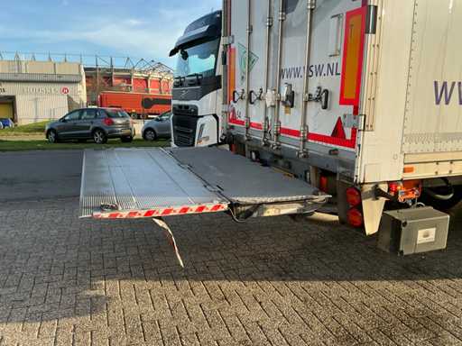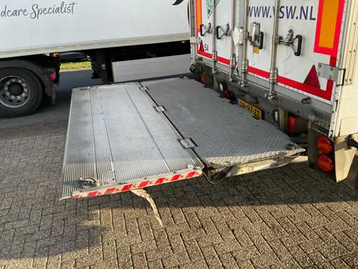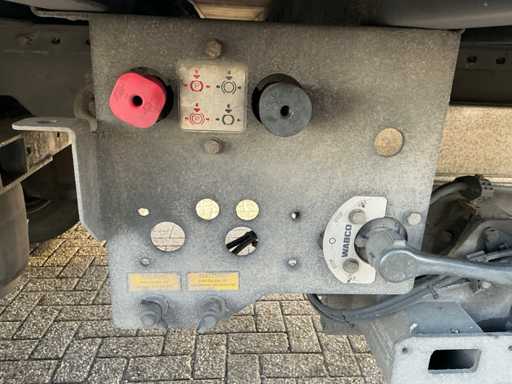 Maximale Masse 30.000 kg, Abstandskupplung zum Heck des Fahrzeugs 1200 cm, Gesamtlänge 1374 cm, Breite 255 cm. Ausgestattet mit einer Dhollandia klappbaren Heckklappe, Talfix, luftgefederten BPW-Achsen, wobei Achse 2 als Lenkachse dient, Reifengröße 265/70R19.5
