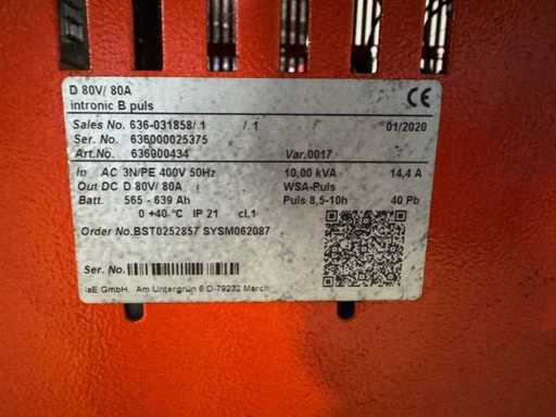 2020 Linde 80V 80A 565-639Ah Ladegerät Gabelstapler Elektrostapler charger