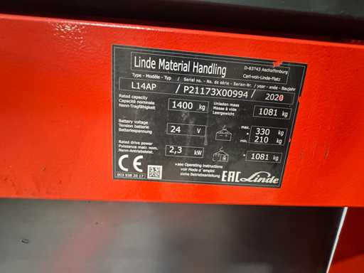 2020 Service +UVV 09/2026 Linde L14AP EVO 1.400kg Hubwagen Ameise 4.617 Stunden