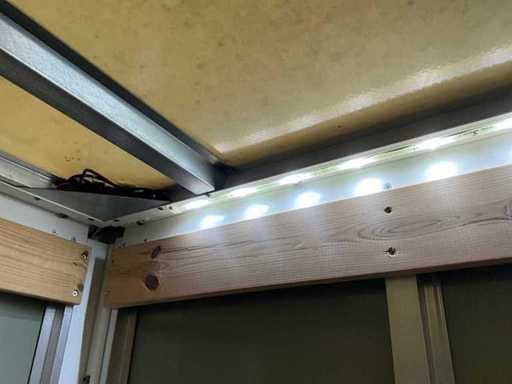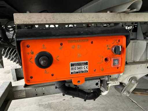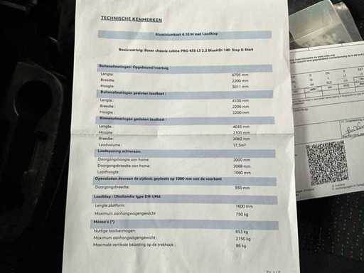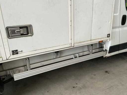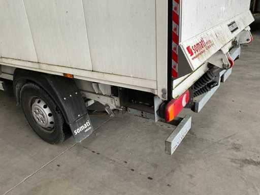 Ausgestattet mit einem Aluminiumschrank von 410x220x220 cm und einer Laderampe in Dhollandia.