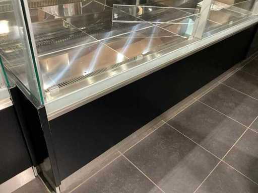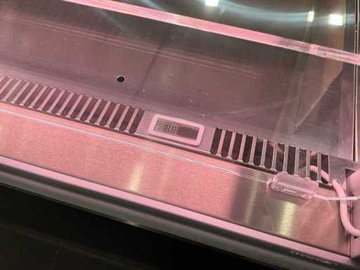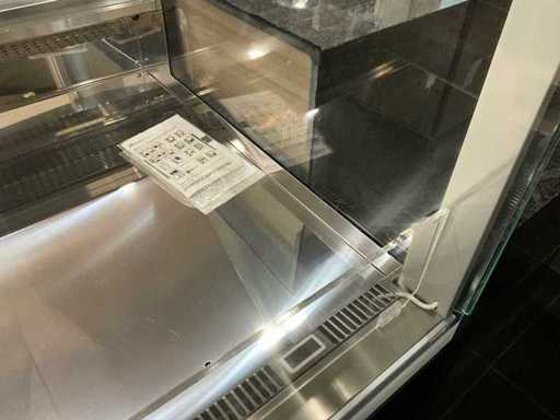 Die Vitrine ist in ordentlichem, gebrauchtem Zustand und mit Innenbeleuchtung und digitaler Steuerung ausgestattet. Geeignet für die Präsentation von Aufschnitt, Käse, Tapas, zubereiteten Gerichten und anderen gekühlten Produkten – Elektrische Daten: 230 Volt / 50 Hz, Nennleistung: 800 Watt, Nennstrom: 4,2 A – Steuerung: Digitale Temperaturregelung Dixell – Ausführung: Gerade Glaskonstruktion, Schiebe- und Neigungsfenster für Bedienung und Reinigung, Innenbeleuchtung (Fleisch-/warme Präsentationsfarbe sichtbar), Edelstahl-Präsentationsboden, 1 Produktvertrieb inbegriffen, luxuriöse schwarze Frontpaneele, robuste professionelle Bau, Unterbau mit integrierter Kältetechnik, geeignet für den täglichen gewerblichen Gebrauch – FUNKTIONAL, seit November 2024 im Einsatz