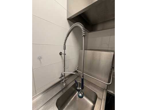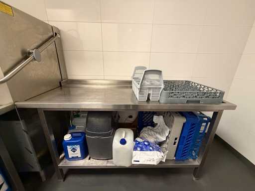Abmessungen des Zuführtischs mit Sprühkopf ca. L160 x W73 x H90 cm. Abmessungen der Entladungstabelle ca. L160 x W75 x H90 cm.