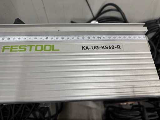 Enthält: Festool UG-AD-KS60 mobiles Sockel, Festool KA-UG-KS60 Querschnittzaun links und rechts (Klemme des rechten Stopps fehlt) und Festool-Fasen