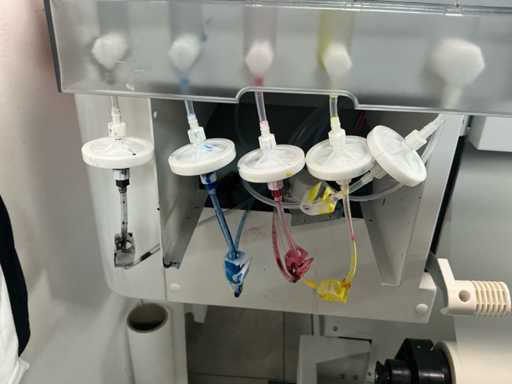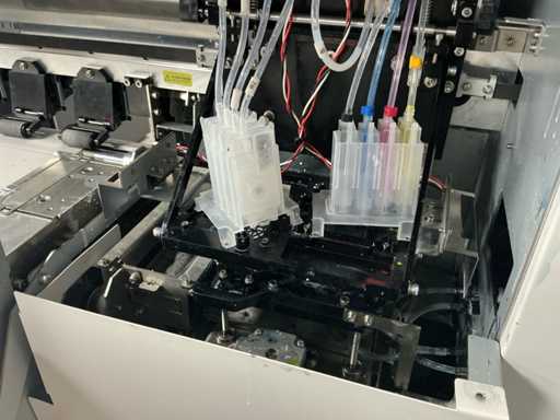 Gut gepflegte Maschine; Gut gereinigt, sodass das Produkt sofort verwendbar ist. In den Rohren befindet sich keine getrocknete Farbe, diese wurden gründlich gereinigt, um Austrocknung oder Verstopfungen zu verhindern (siehe Bilder); Ausgestattet mit zwei Druckköpfen, von denen einer ersetzt werden muss.