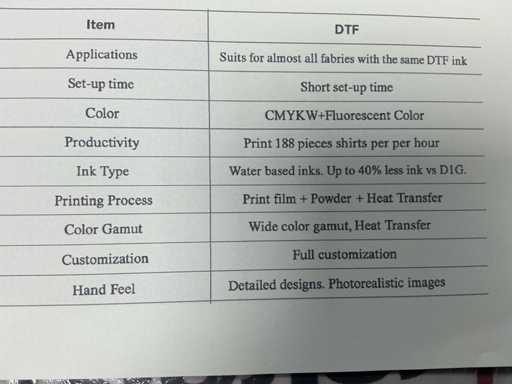 Tintentyp: Wasserbasierte DTF-Tinte, bis zu 40 % weniger verbraucht als DTG-Prozesse.