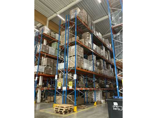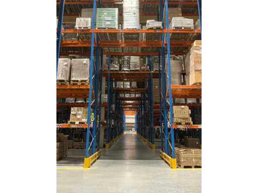 Bestehend aus acht aufgebauten Palettenregalen, inklusive Anfahrschutz. Ware ist nicht enthalten. Dieses Los ist Teil eines Kombinationsloses (Los 9), das aus folgenden Losen besteht: 5 bis 6