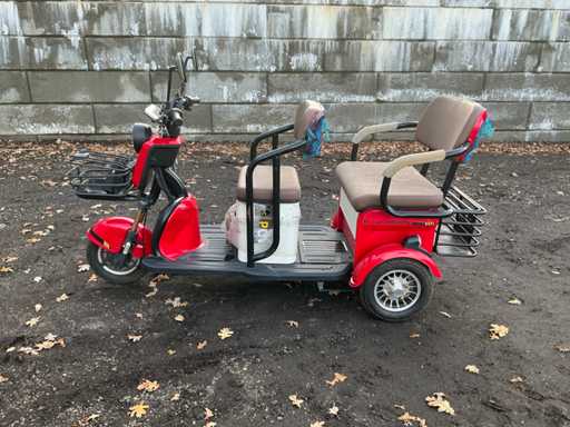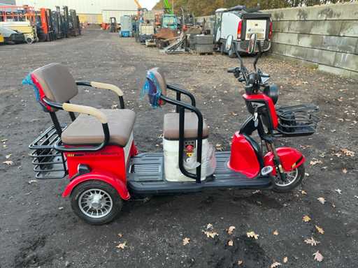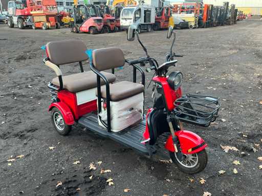 Dazu gehören 110V-Ladegerät, 60V-Batteriepack, Gepäckträger, 3 Sitze, LED-Beleuchtung