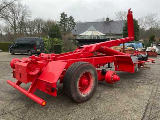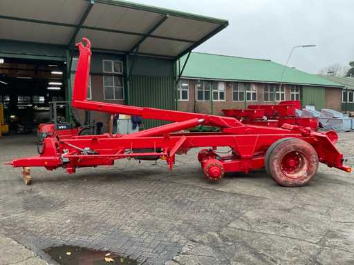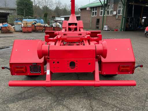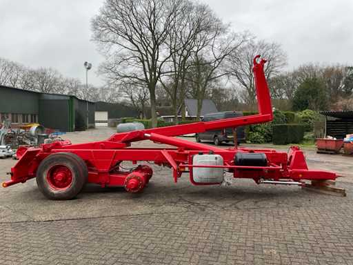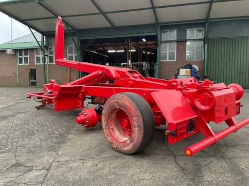 Geeignet für 6-m-Container, maximale Ladekapazität 20 Tonnen, ø Schleppauge 50 mm. Ausgestattet mit Hakenliftsystem, hydraulisch verstellbarer Deichsel, Zwangslenkung und Druckluftbremsen.