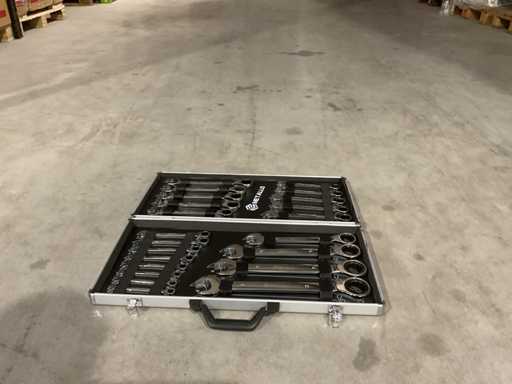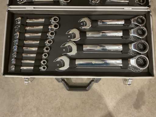 Ausgestattet mit Ratschenschlüsselgrößen: 6, 7, 8, 9, 10, 11, 12, 13, 14, 15, 16, 17, 18, 19, 20, 21, 22, 23, 24, 27, 30, 32mm; Aluminiumgehäuse; Ungenutzt (Transportmaße 600 x 60 x 300 mm, Gewicht: 7,42 kg)