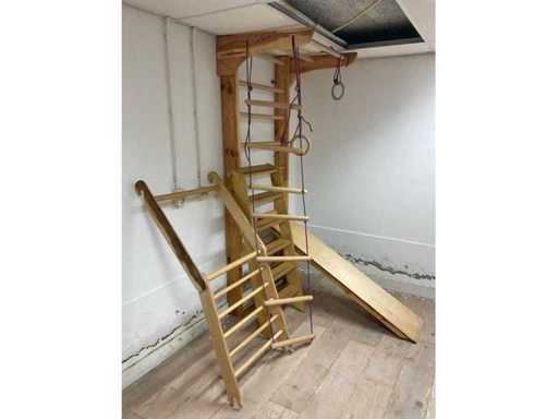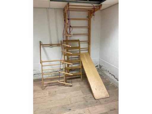 4-in-1 schwedische Holzwand und Kletterleiter für Kinder
