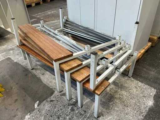Bestehend aus 5x Schrank (120x50x174cm) mit 2 Teilen mit hängendem/abstellbarem Teil, abschließbar, Bank / Basis (120x80x37cm)
