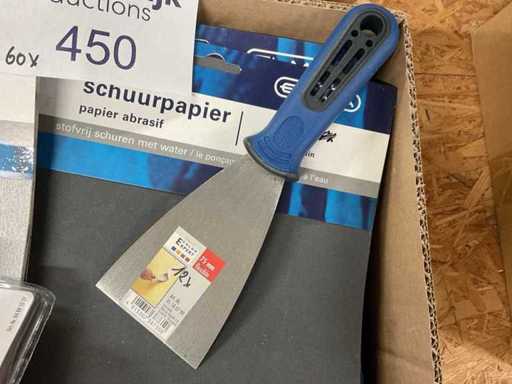 Sandpapier; Spachtel; magnetischer Werkzeughalter; Messingbürsten