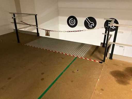 Zweimal eine 96 cm breite Treppe, vorhanden mit Kollisionsschutz, Zwischengeschossgröße 28,5x29 Meter, die Beleuchtung unter dem Zwischengeschoss gehört zum Grundstück, der Holzboden ist 4 Zentimeter dick, teilweise Gitter. Dazu gehört eine Sandwichwand von 350 cm Höhe, etwa 11 Meter lang, Tür und Rahmen im ersten Stock sowie eine Sandwichwand im Erdgeschoss von etwa 24 Metern mit Fensterrahmen, die vollständig demontiert ist