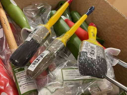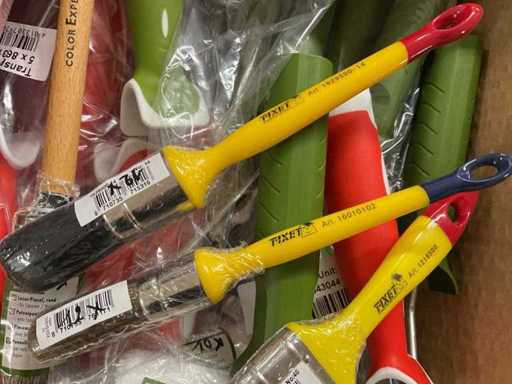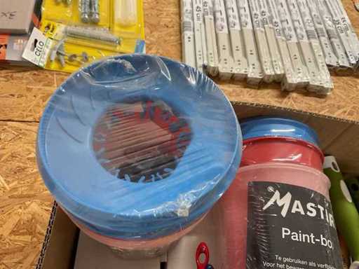 Eimer füllen; Quasten; patentierter Spitzbürsten; Farbrolle mit Halterung