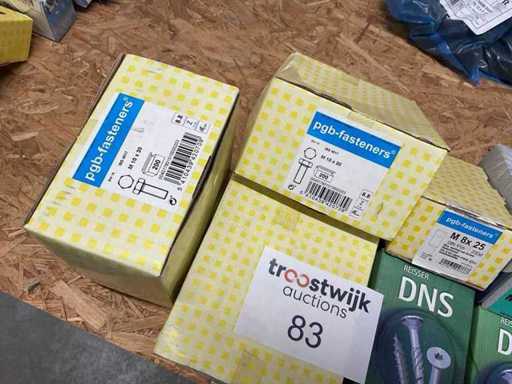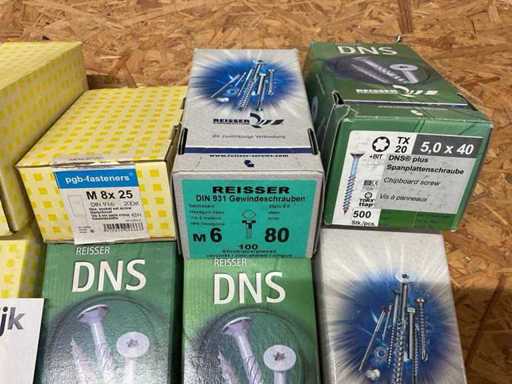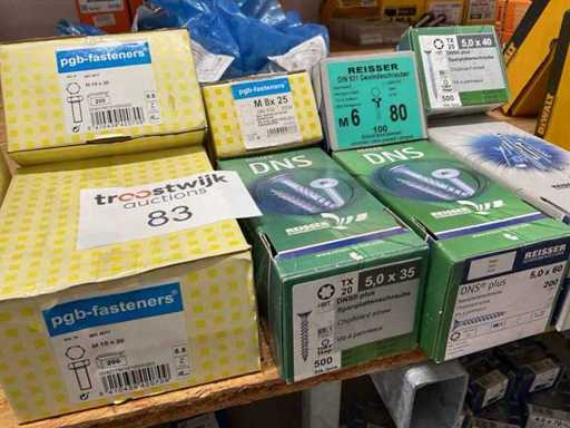 9 Kisten mit Holzschrauben und Bolzen