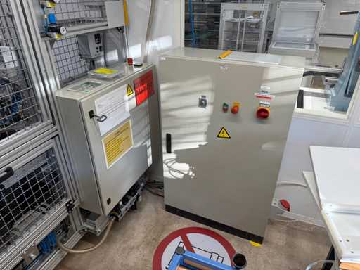 Die Maschine ist so konzipiert, dass Ecken auf eine Kassetteneinheit aufgeschmolzen und an Ort und Stelle gepresst werden.