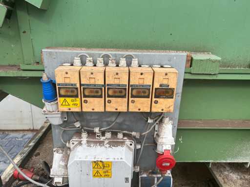 400V Motoren für Förderbänder, diverse 230V Kabel, 400V Wasserpumpe, Tropfwanne. Tropfschale mit Wasserpumpe, getrennt von den Reifen für den Transport, Rollenbahn nicht im Lieferumfang enthalten