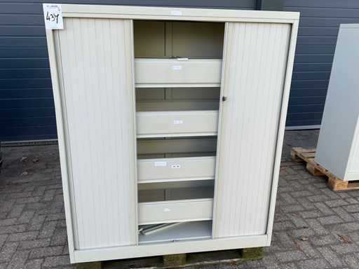 Bestehend aus: (2x) Rolltürschrank 120x45x136cm, (1x) Rolltürschrank 105x45x120cm.