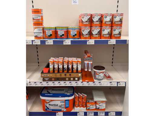 12x Weichholzgrundierung, 12x Parkettgrundierung, 5x Fliesenfarbe usw.