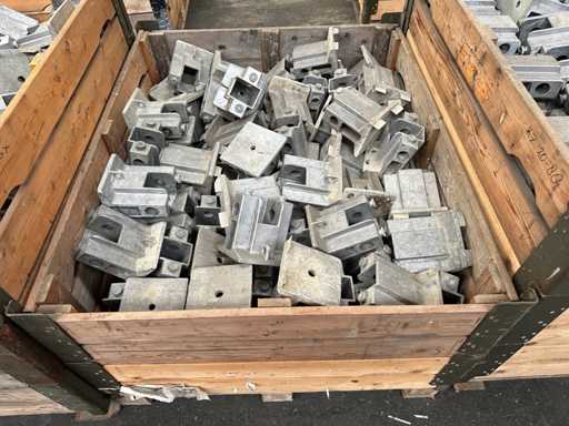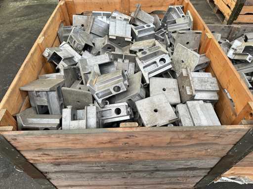 Diese Charge besteht aus ca. 350 Aluminium-Grundplatten zu je ca. 3 kg. Wird für Armeezelte verwendet.