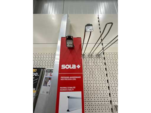 Aluminiumreihe in 150.200 und 250 cm, 11x stabila aluminiumreihe, 9x Sola Magnet Wasserwaage klein, 1x Sola Wasserwaage 180 cm