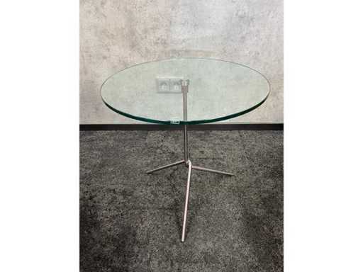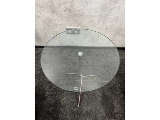 Dimm. Sessel ca. hxbxd 70x150x90 cm. Sitzhöhe ca. 40 cm. -- Dim. Design-Couchtisch, ca. 51 cm Höhe. und Durchmesser 50 cm.