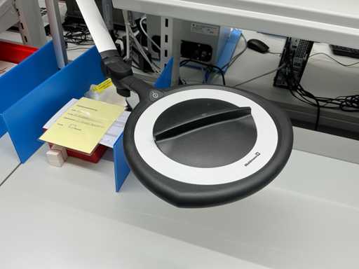 Mit Stuhl und Waldmann Lupe mit Lampe