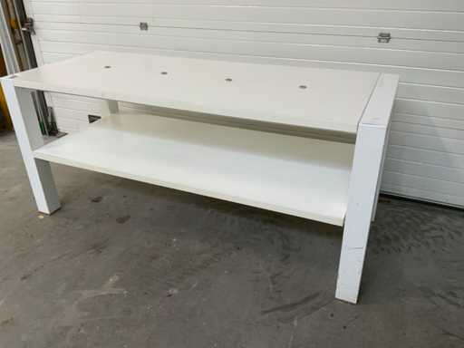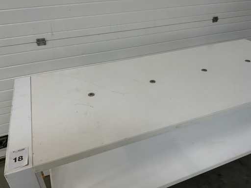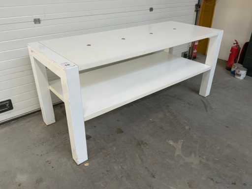 Holzdecke, Metallbeine, mit Wasserwaage