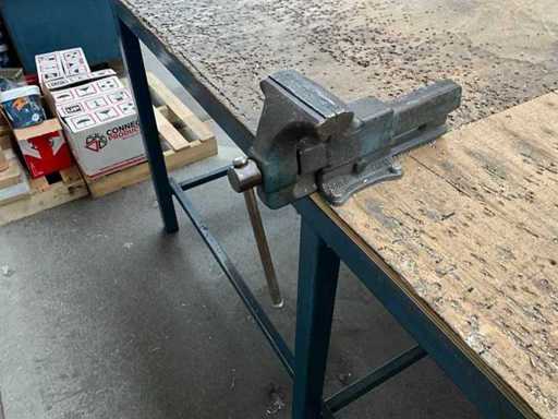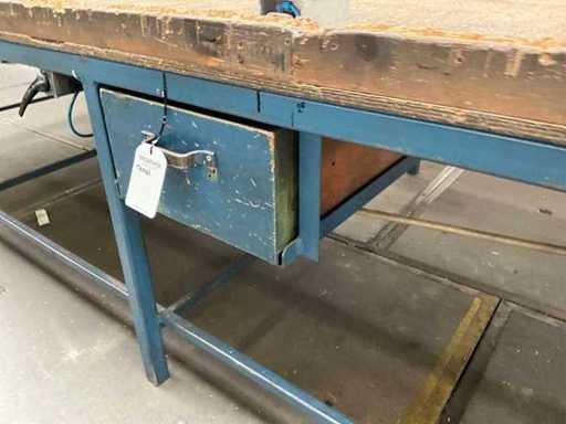 Arbeitsflächenhöhe 9100 mm, 5x pneumatische Klemme, 2x Heuer/Brockhaus-Schraubstock, 1x Druckluftanschluss, 2x Schubladen