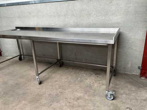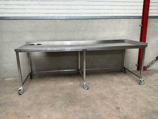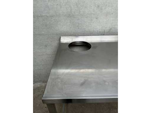 Mobiler Edelstahl-Arbeitstisch, erhöhte Kante, Loch für den Soßeneimer