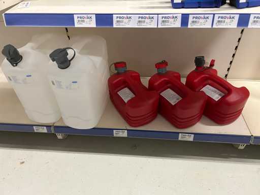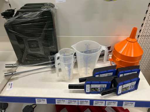 Bestehend aus unter anderem Kanistern, Messbechern, Trichtern und Unkrautbrennern