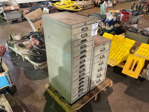 1x ausgestattet mit 6x Schubladengröße 29x42x58cm, 1x mit 15x Schubladengröße 29x42x85cm. Auch Inhalte.