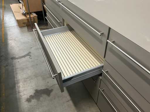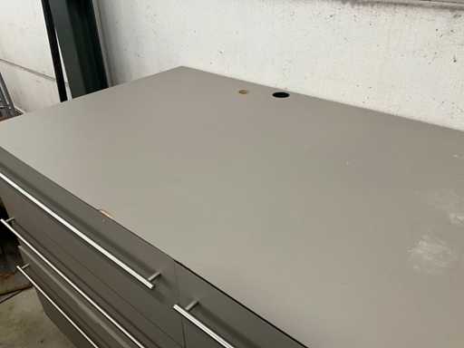 In Furnierholzversion, ausgestattet mit 9 Schubladen an der Vorderseite.