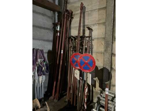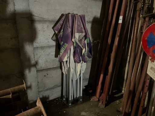 Bestehend aus etwa 17 Galva-Stücken mit einer Ruhelänge zwischen 160 und 280 cm, von denen die Hälfte Seitenstreben sind, + 2x Verkehrsschild zu Fuß, +1x Partyzelt