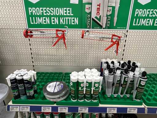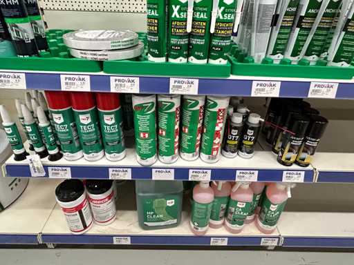 Bestehend aus TEC7 und Bostik, unter anderem. Dazu gehören Dichtmasse, Kleber, Entfetter und Reiniger. Die Werbespalte TEC7 ist Teil des Lots