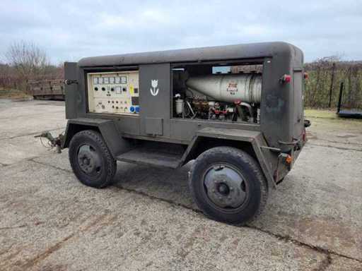 Ausgestattet mit 6-Cil. "Deutz"-Dieselmotor; luftgekühlt; 60kva; 1500 U/min; "Bauscher"-Generator; 400V 230V 87Amp; Gesamtlänge einschließlich Deichsel: 5300 mm; Bitte beachten Sie, dass separate Batterien aus dem Video ausgeschlossen werden: