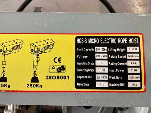 Maximal 250 kg, Hebehöhe maximal 12 Meter.