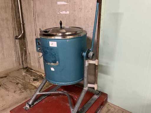 Bertschinger Wäscheschleuder / Zentrifuge, Typ FK46L100 RV 06, ca. 4,7 kW, 400 V, auf stabilem Stahlgestell, manuelle Kippvorrichtung, Deckel aus Edelstahl;