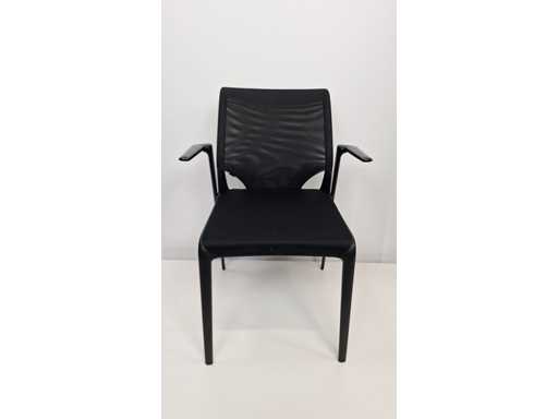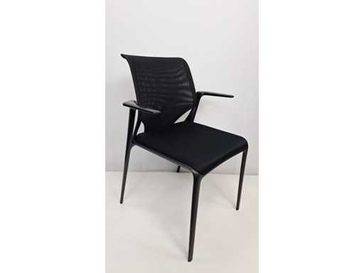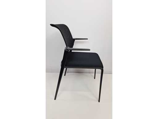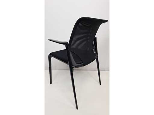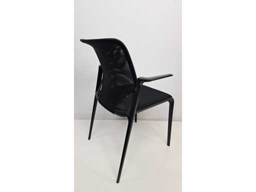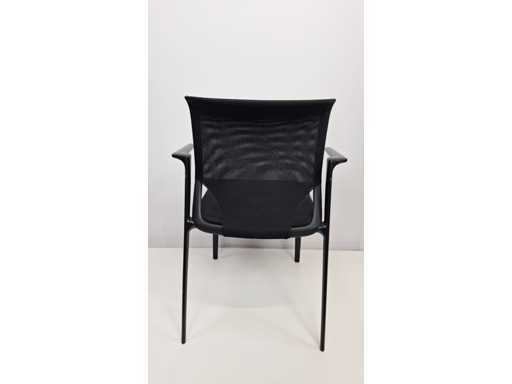 Vierbeinige Basis in Metallfarbe Schwarz, Polster in Stofffarbe Schwarz, Rückenlehne in Netzgewebefarbe Schwarz, Armlehnen in Kunststofffarbe Schwarz, schönes Set mit leichten Abnutzungsspuren