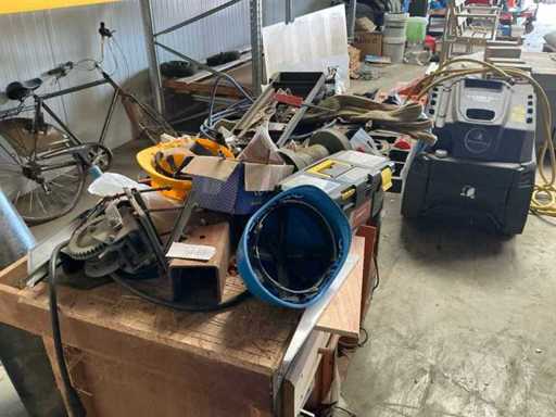Inhalt enthält: Winkelschleifer, Mini-Kompressor, 3 verschiedene Elektrowerkzeuge