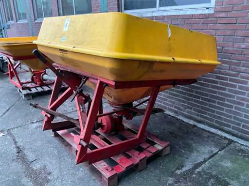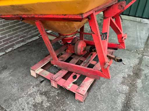 Dies ist ein Pendelspreader, ausgestattet mit einer 3-Punkt-Verbindung, Befestigungskante und Dosierungsanpassung