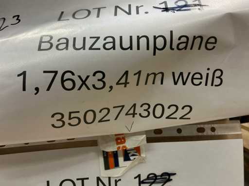 Bauzaunplane, 1,76 × 3,41 m, weiß , 23 Stück