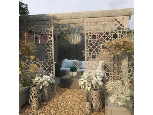 Der Alhambra ist das perfekte Außenschutzgitter, um Ihrem Garten Stil und Privatsphäre zu verleihen. Inspiriert vom traditionellen Fensterdesign der arabischen Architektur, wird es eine wunderschöne Ergänzung für Ihren Garten sein.