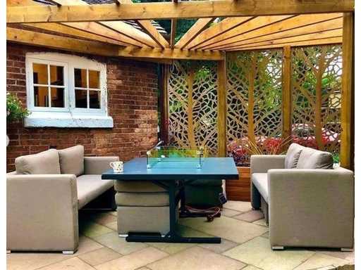 L'Arbre bringt die zeitlose Eleganz botanischer Muster in Ihren Garten. Ursprünglich haben wir es als Blattmuster entworfen, aber viele unserer Kunden sehen es als Baum. Egal wie man es betrachtet, genieße dieses schicke Muster, ohne dir Sorgen um die Pflege zu machen. Inspiriert von den schönsten Mustern der Natur, bietet dieser Corten-Gartenzaun stilvolle Privatsphäre, ohne Ihr ganzes Sonnenlicht zu blockieren. Nutzen Sie es als eigenständiges Gartenelement (indem Sie unsere Corten-Pfosten hinzufügen) oder entlang der Beete, um Ihrem Zaun ein neues Aussehen zu geben.